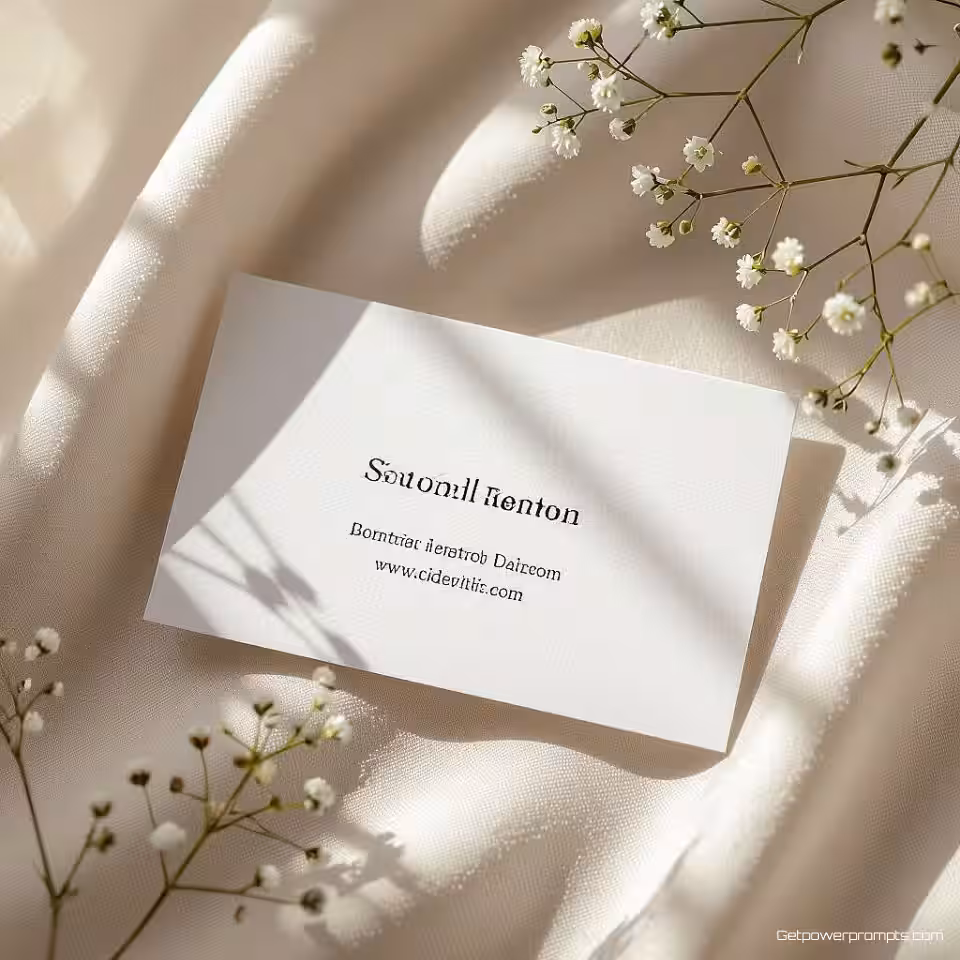 Visitekaartje, minimalistisch, minimalistische printdesign esthetiek, witte achtergrond achtergrond, zacht studio verlichting, centrale compositie lay-out, schone typografie, negatieve ruimte, professionele presentatie, subtiele schaduwen, premium printkwaliteit