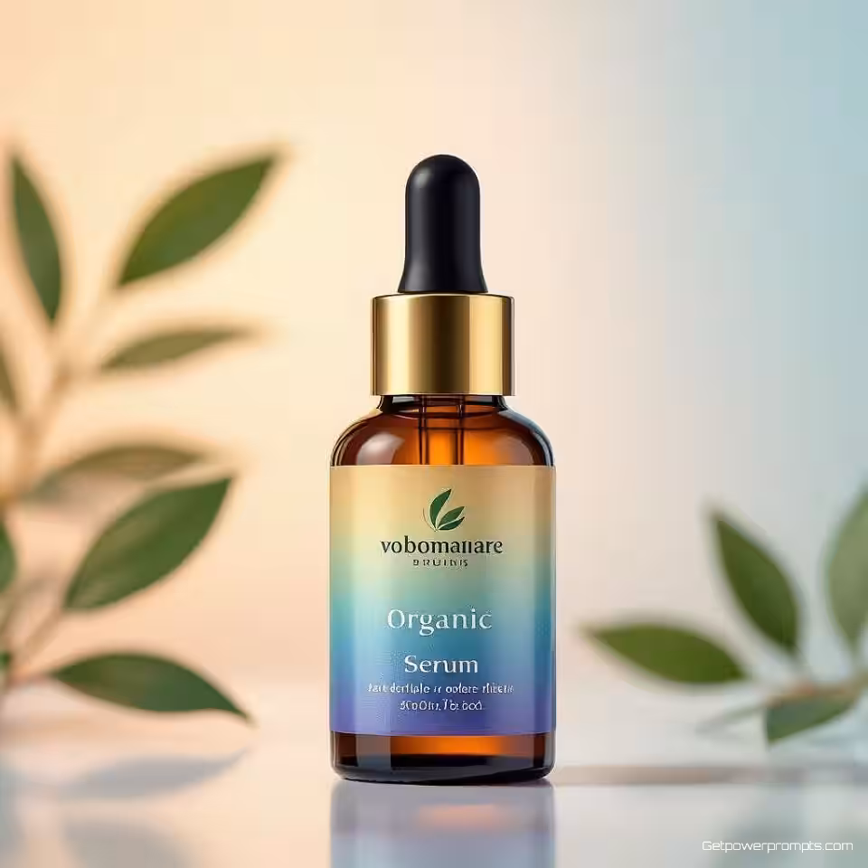 Organische huidverzorgingsserum, fotorealistisch, verloop achtergrond achtergrond, studiobelichting verlichting, close-up perspectief, levendig kleurenpalet, social media advertentie, opvallend ontwerp, moderne esthetiek