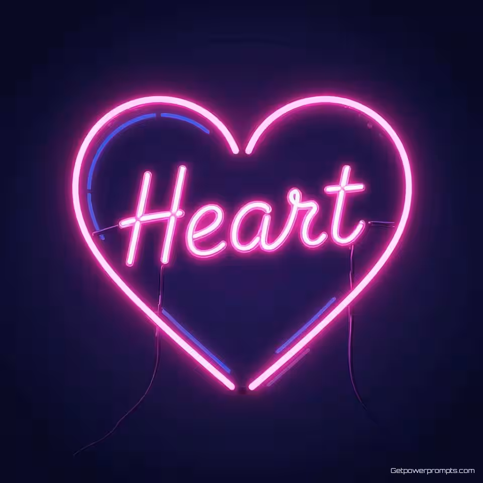 Hart, neonbord stijl, roze en blauw gloed, donker verloop achtergrond, retro esthetiek, levendige verlichting, donkere sfeer, vector kunst, professionele branding, commercieel gebruik