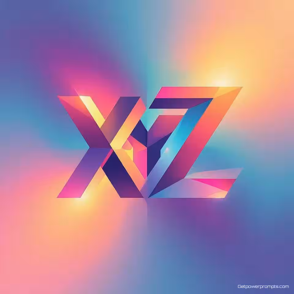 XYZ, geometrische kunst digitale kunst, levendig kleurenschema kleurenschema, verloop achtergrond achtergrond, dramatische verlichting verlichting, abstracte compositie, moderne branding, creatieve typografie, artistieke interpretatie, levendig digitaal kunstwerk