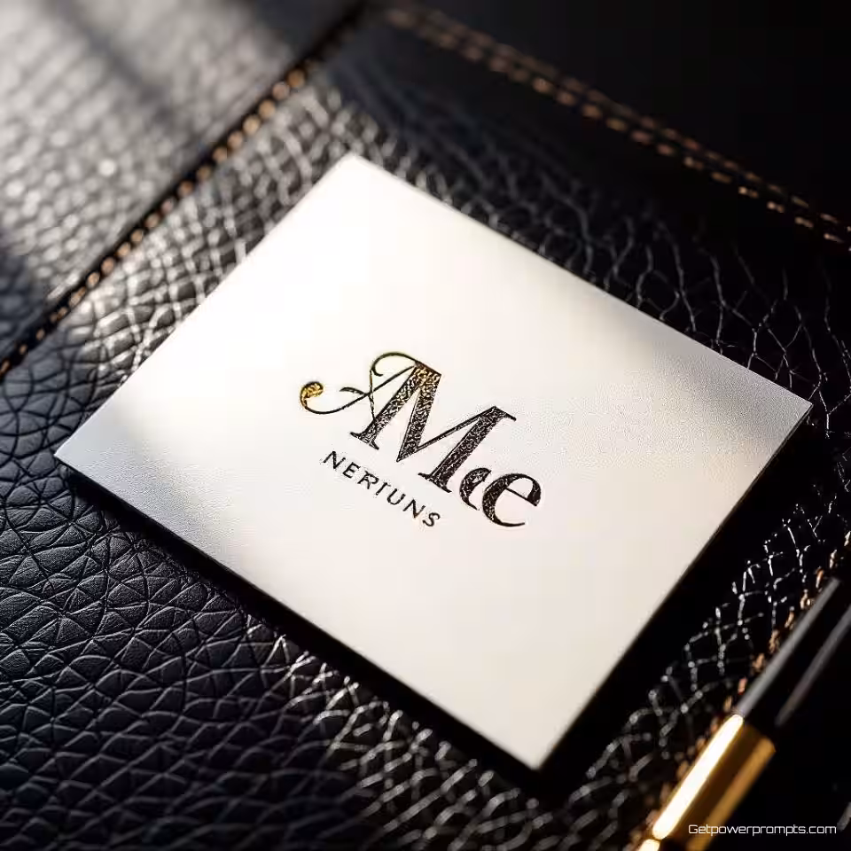 Moderne typografie logo, premium leer oppervlak, foliedruk techniek, zacht zijlicht verlichting, elegant en luxueus sfeer, professionele merkpresentatie, realistische materiaaltexturen, gedetailleerd vakmanschap, schone compositie, luxe merkidentiteit