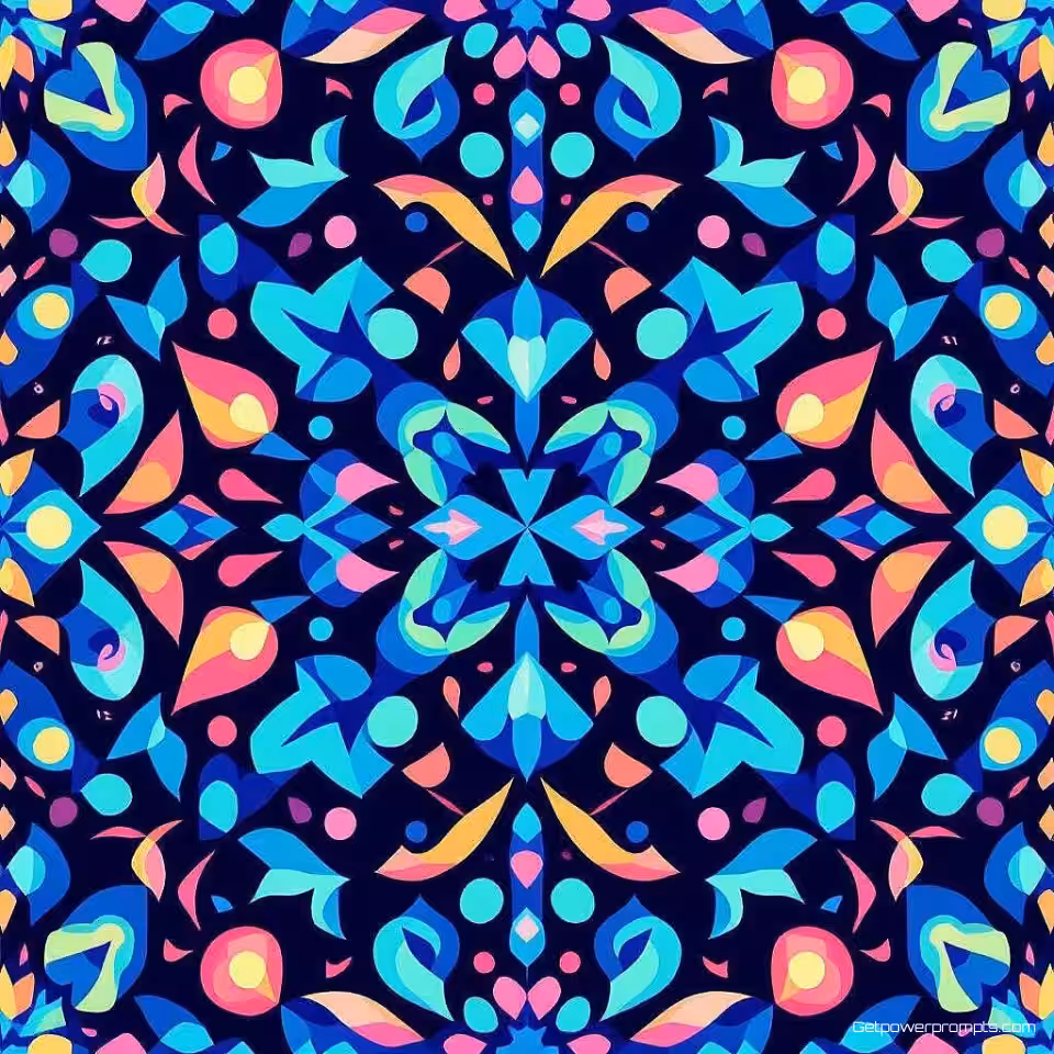 Dit lijkt op een beschrijving voor een modern, futuristisch digitaal patroon. Het ontwerp zou bestaan uit een abstract geometrisch patroon met levendige kleuren, ontworpen als een naadloos herhaalbaar motief. De achtergrond is effen van kleur, waardoor de complexe vectorelementen en de geometrische abstractie goed tot hun recht komen. Het resultaat is hoogwaardige digitale kunst met een moderne esthetiek, gekenmerkt door ingewikkelde vormen en een levendig kleurenschema.