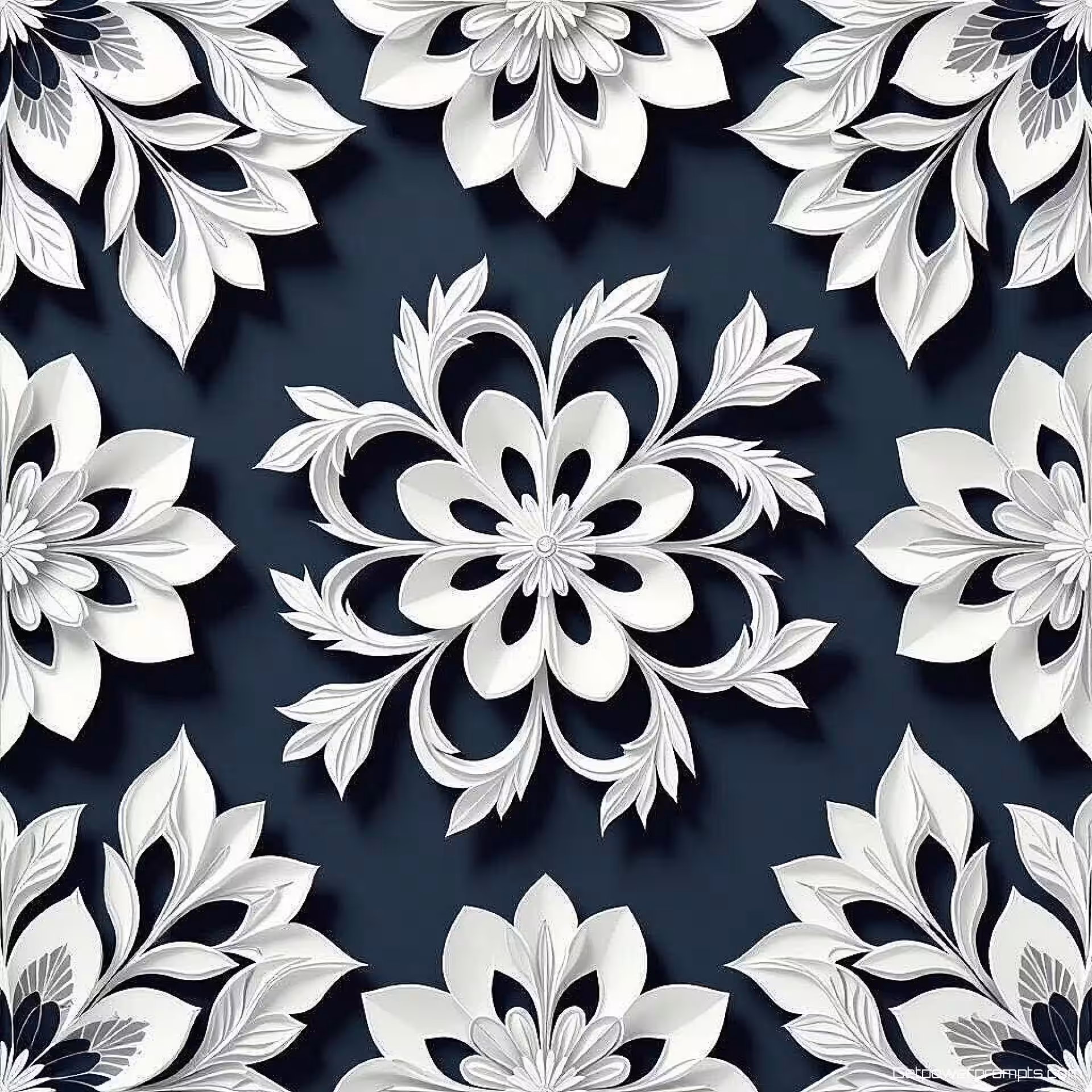 Botanisch, ingewikkeld papier snij textuur, monochroom kleurenschema, ondiep dimensionale lagen, naadloos herhalend patroon, effen achtergrond, ingewikkelde papier silhouetten, schaduwspel effecten, hoge resolutie digitale kunst, tactiele papier ambacht esthetiek, precies laser-gesneden uiterlijk