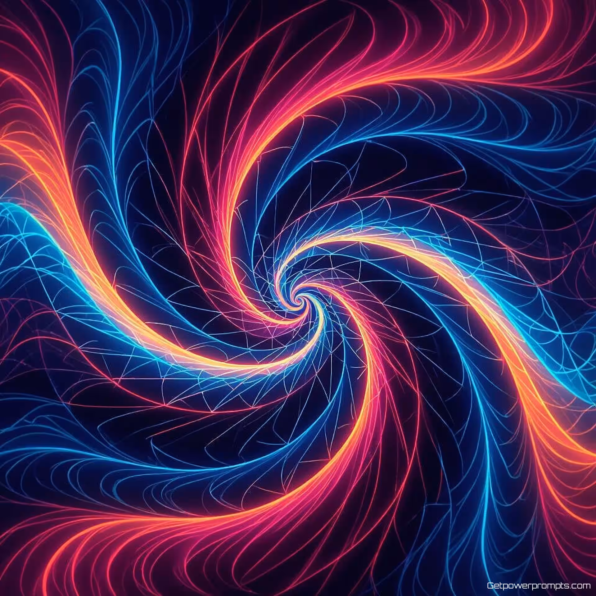Kosmische energie, kinetisch bewegingspatroon, abstract digitaal digitaal ontwerp, elektrisch neon kleurenschema, dynamische bewegingsillusie, optische stroomeffecten, naadloos herhalende textuur, effen kleur achtergrond, hoogwaardige digitale kunst, spiraalvormig bewegingsstijl, abstracte kinetische energievisualisatie