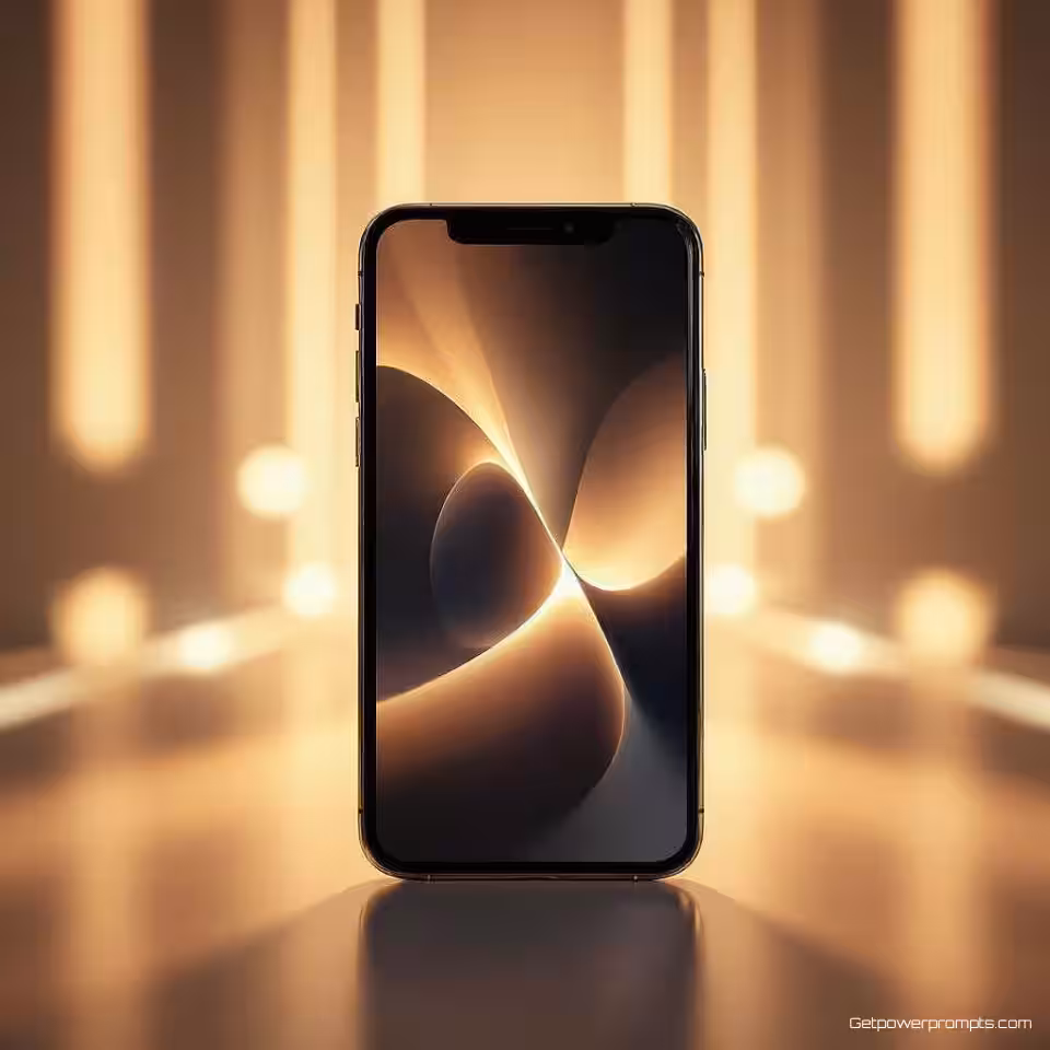 Smartphone, fotorealistisch, studio achtergrond, dramatisch verlichting, close-up perspectief, warme tonen, dynamische productpresentatie, professionele e-commerce presentatie, scherpe focus, verbeterde productzichtbaarheid, commerciële esthetiek