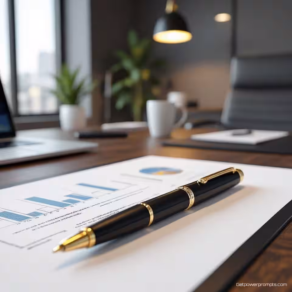 Executive pen, fotorealistisch, professioneel sfeer, close-up perspectief, natuurlijk licht verlichting, directiekantooromgeving, premium bureauopstelling, professionele integratie, authentiek zakelijk gebruik, minimalistisch achtergrond, scherpe focus op product, zakelijke esthetiek, verfijnde werkruimtedetails