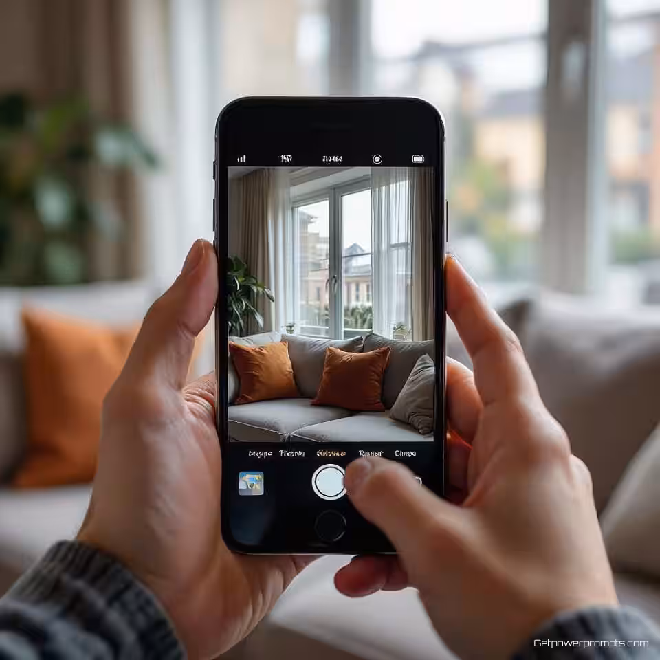 Smartphone, door gebruikers gemaakte ontdekkingsfotografie, nieuwsgierig sfeer, woonkamer achtergrond achtergrond, natuurlijk daglicht verlichting, close-up perspectief perspectief, authentiek eerste ontmoetingsmoment, smartphone camera-esthetiek, natuurlijke handinteractie, oprechte gebruikersreactie, zachte achtergrondfocus, spontane ontdekkingsstijl