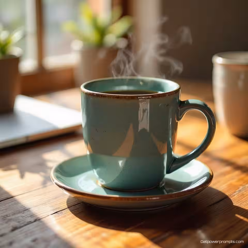 Ambachtelijke keramische koffiemok, door gebruikers gegenereerde storytelling fotografie, gezellige ochtendsfeer sfeer, thuiskantoor setting achtergrond, zacht ochtendlicht verlichting, close-up perspectief perspectief, authentieke narratieve stijl, smartphone camera esthetiek, product in persoonlijke context, natuurlijke storytelling elementen, zachte achtergrond focus, oprecht gebruikersverhaal moment