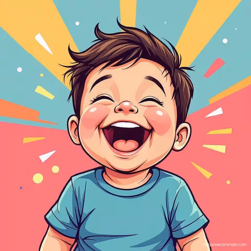 Lachende baby, vector kunst digitale cartoon, hilarisch uitdrukking, effen kleur achtergrond, meme sjabloonformaat, dikke contouren, overdreven gezichtskenmerken, fel en levendig kleuren, internet meme esthetiek, virale content stijl, herkenbare humor