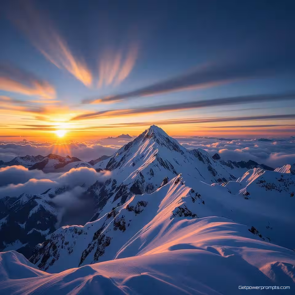 Met sneeuw bedekte bergketen, langbelichting fotografie, wolkenbewegingspatronen, zonsondergang horizon achtergrond, gouden uur belichting belichting, warme zonsondergang tonen, atmosferische luchtcompositie, verlengde belichtingstijd, dynamische wolkenstrepen, breed perspectief perspectief, dromerige sfeer atmosfeer, time-lapse effect, natuurlijke beweging vastleggen, etherische wolkenformaties