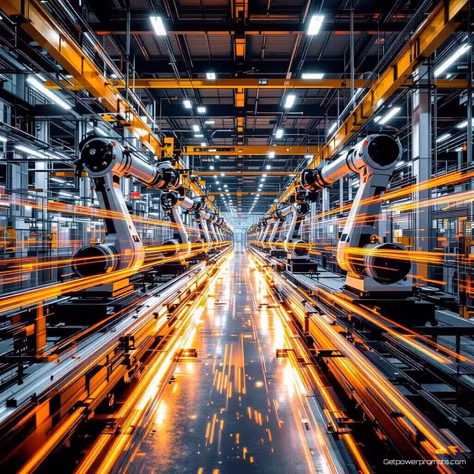 Genereer professionele industriële fotografie met bewegings effecten, toon machinedynamiek, creëer atmosferische fabrieksscènes met artistieke bewegingsonscherpte, produceer unieke industriële kunst voor commerciële en creatieve projecten