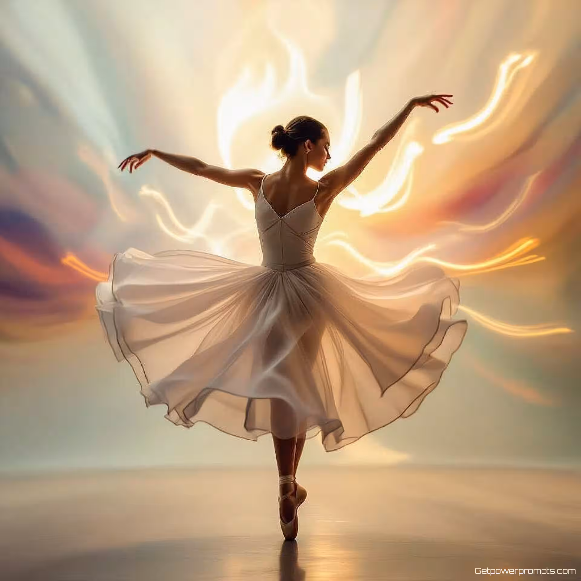Balletdanser, fotografie met bewegingsonscherpte in de schone kunsten, abstract expressionistisch esthetiek, horizontaal pannen perspectief, zacht natuurlijk licht belichting, dromerig atmosfeer, pasteltonen tonen, artistieke beweging vastleggen, opzettelijke camerabeweging, galerij tentoonstellingskwaliteit, dynamische visuele energie, expressieve onscherpte-effecten