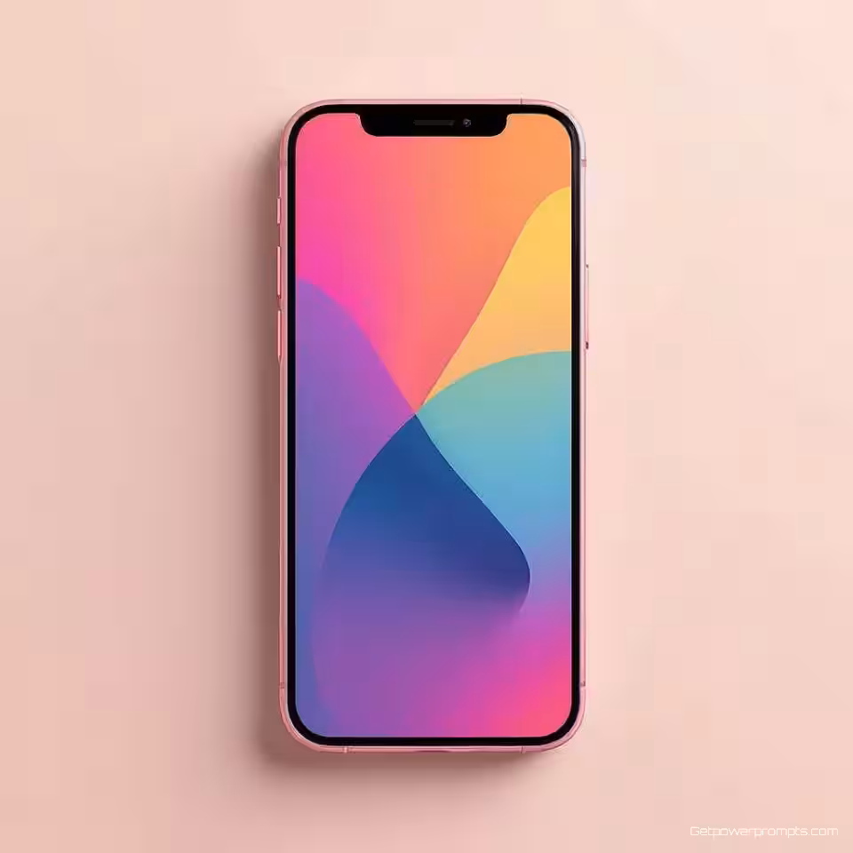 Smartphone, geometrische abstracte kunst, digitale illustratie weergave, gradiënt achtergrond, studiobelichting verlichting, pastelkleuren, moderne advertentie-esthetiek, schone lijnen, gestructureerde compositie, professionele displayadvertentie, scherpe focus, commerciële aantrekkingskracht