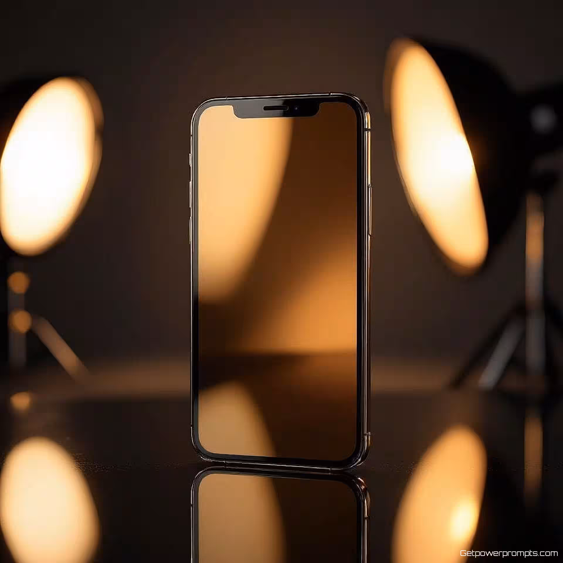 Premium smartphone, reflectiefotografie, schone studiogtergrond achtergrond, professionele studiobelichting belichting, close-up compositie perspectief, gespiegeld oppervlak, commerciële reclame-esthetiek, scherpe focus, monochroom kleurenschema, elegante productreflectie, professionele displayadvertentie