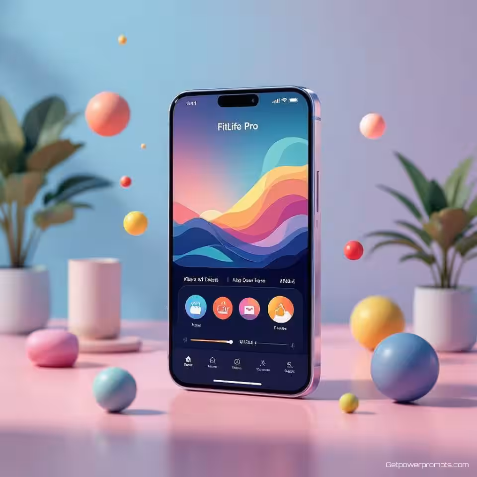 FitLife Pro App, social media story visual, 3D render stijl, energieke en levendige sfeer, abstracte gradient achtergrond, zacht natuurlijk licht verlichting, verticale compositie, levendige kleuren, moderne esthetiek, opvallend ontwerp, professionele marketinguitstraling, mobiel geoptimaliseerde lay-out