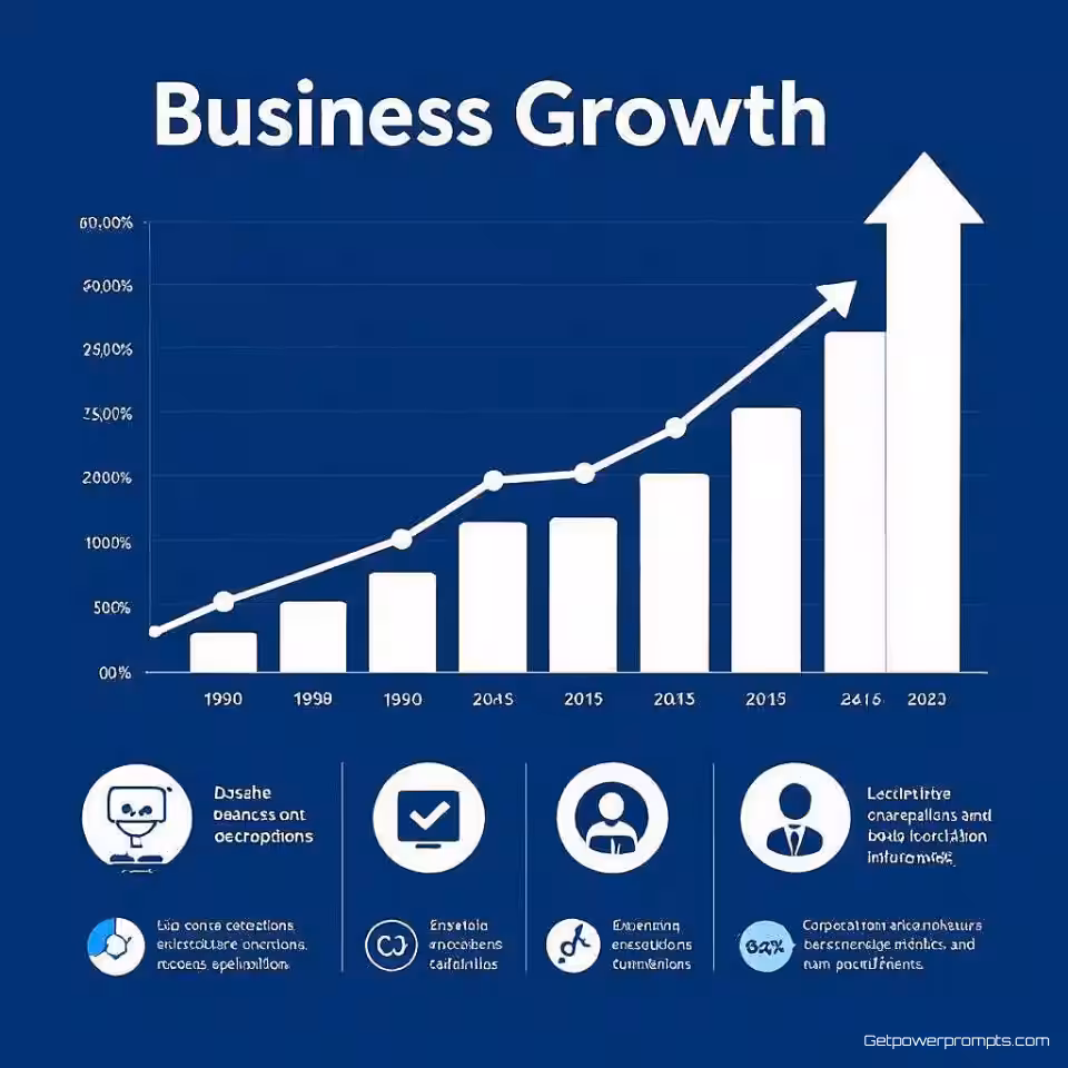 Bedrijfsgroei grafiek, modern minimalistisch infographic, professioneel sfeer, zakelijk blauw kleurenschema, vogelperspectief perspectief, brochure lay-out, datavisualisatie, schoon informatiedesign, professionele presentatie, moderne esthetiek