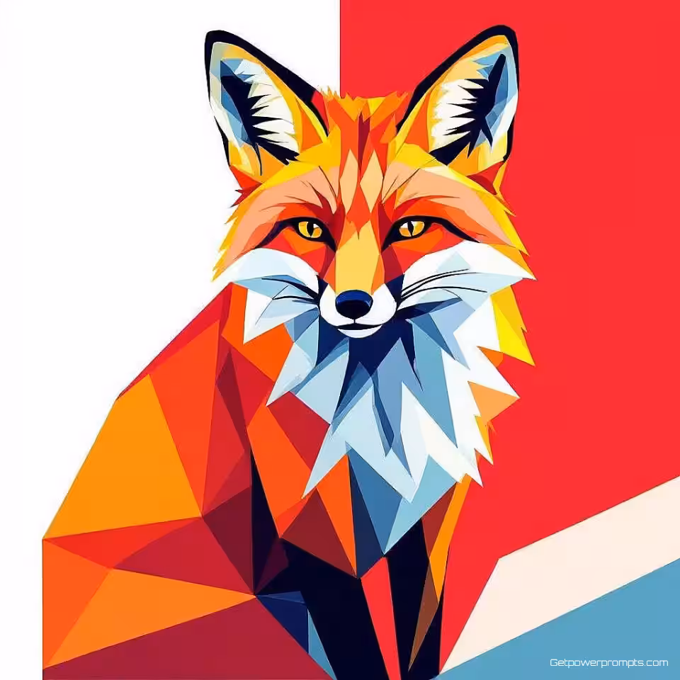 - **Geometrische vos**: De vos is opgebouwd uit strakke, hoekige vormen zoals driehoeken, rechthoeken en polygonen, waardoor een gestileerd en modern uiterlijk ontstaat.