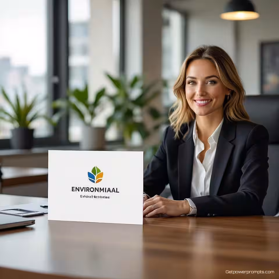 Zakelijk visitekaartje met logo, omgevingsportretfotografie, directiekamer bureau werkplek, warme kantoorverlichting verlichting, professionele sfeer sfeer, natuurlijke compositie, contextueel verhaal, professionele zakelijke esthetiek, authentieke omgeving, zachte achtergrondfocus