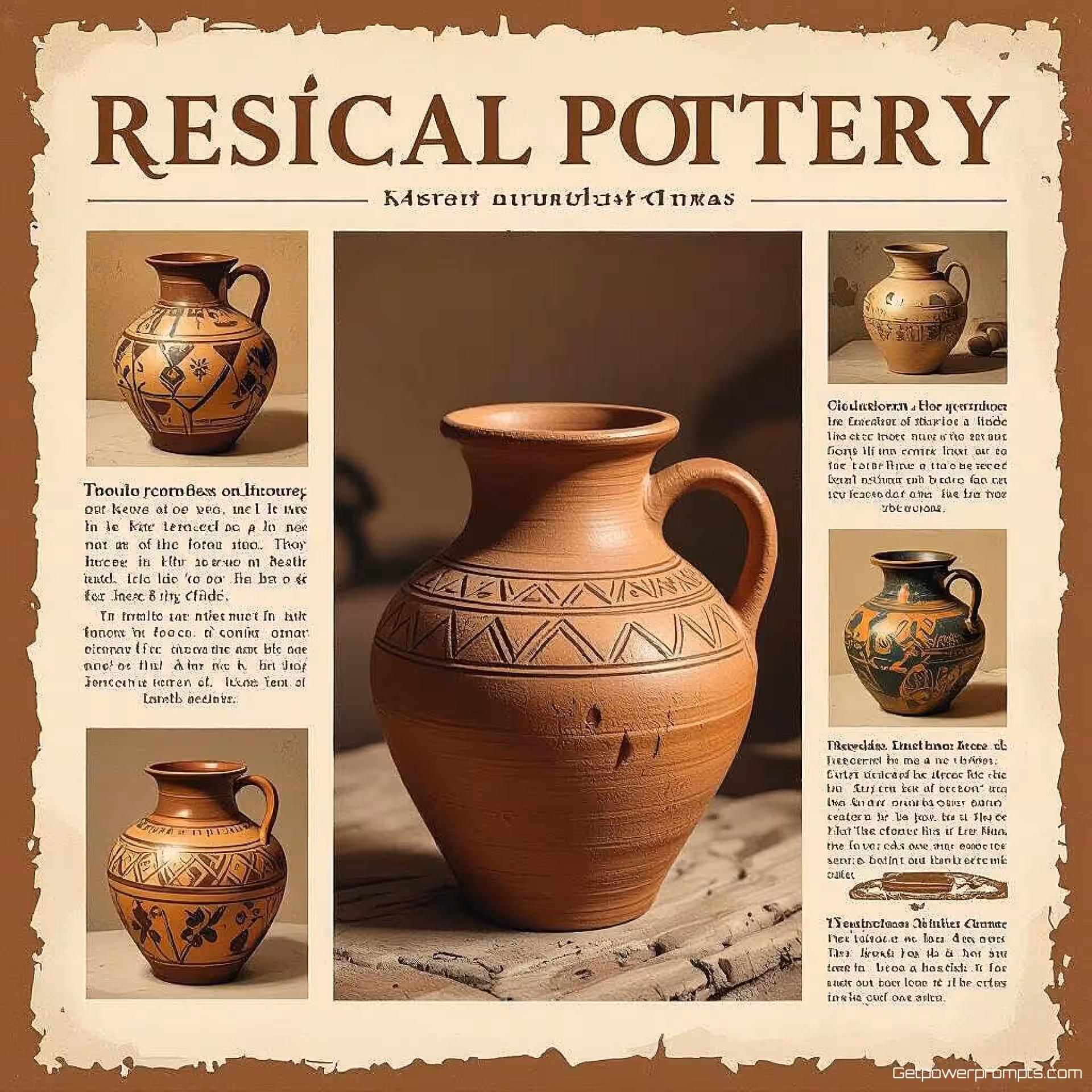 Handgemaakt aardewerk, digitale schildering, educatief sfeer, aarde tinten, redactionele cultureel erfgoed illustratie, traditioneel vakmanschap details, historische artefacten, tijdschrift lay-out gereed, professioneel kunstwerk, cultureel verhaal vertellen, publicatie kwaliteit, authentieke weergave, educatieve context