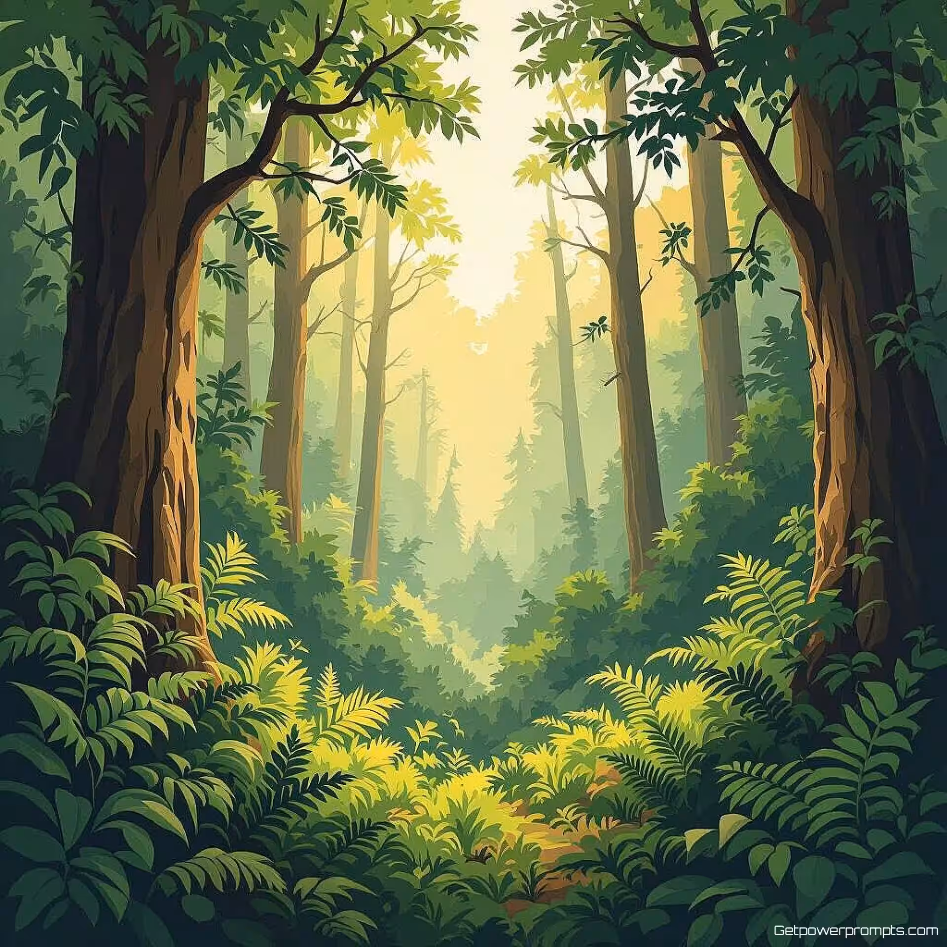 Behoud van gematigd regenwoud, digitale schilderstijl, hoopvol en optimistisch sfeer, aarde tinten palet, redactionele milieu-illustratie, ecologisch verhaal, klaar voor tijdschriftindeling, professioneel kunstwerk, natuurlijke elementen, publicatiekwaliteit, educatieve context, boodschap voor natuurbehoud, gedetailleerde milieu-elementen