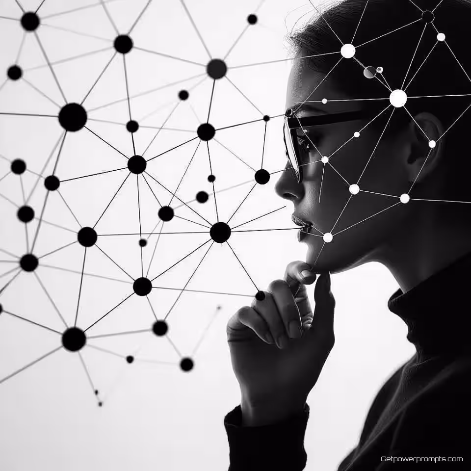 Onderling verbonden netwerk, digitale schilderkunst, bedachtzaam sfeer, close-up perspectief, monochroom, redactionele visuele metafoor, symbolische juxtapositie, tijdschrift lay-out gereed, conceptuele diepgang, professionele illustratie, tot nadenken stemmende beeldtaal, publicatiekwaliteit