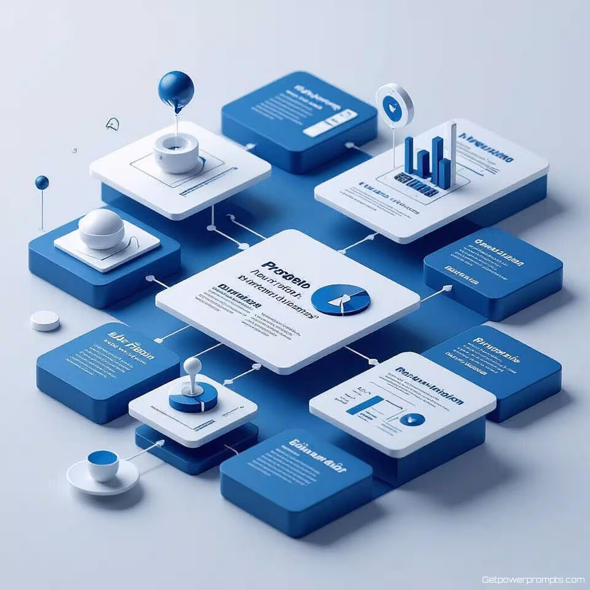 Projectontwikkelingsfasen, 3D render, professioneel sfeer, proces tijdlijn visualisatie, redactionele lay-out, schone witte achtergrond, blauw en grijs, sequentiële progressie ontwerp, professioneel whitepaper diagram, schone verbindende elementen, zacht diffuus verlichting, informatiestroom visualisatie, moderne redactionele esthetiek