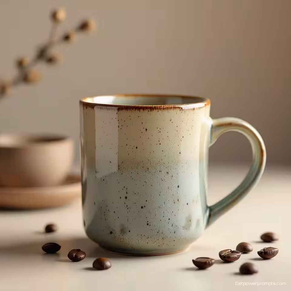 Ambachtelijke keramische koffiemok, fotorealistisch, studio achtergrond achtergrond, studioverlichting verlichting, close-up perspectief, aards kleurenpalet, Instagram carrouselformaat, productpresentatie esthetiek, samenhangend visueel verhaal, scroll-stop aantrekkingskracht, professionele styling, commerciële kwaliteit, boeiende sociale media inhoud