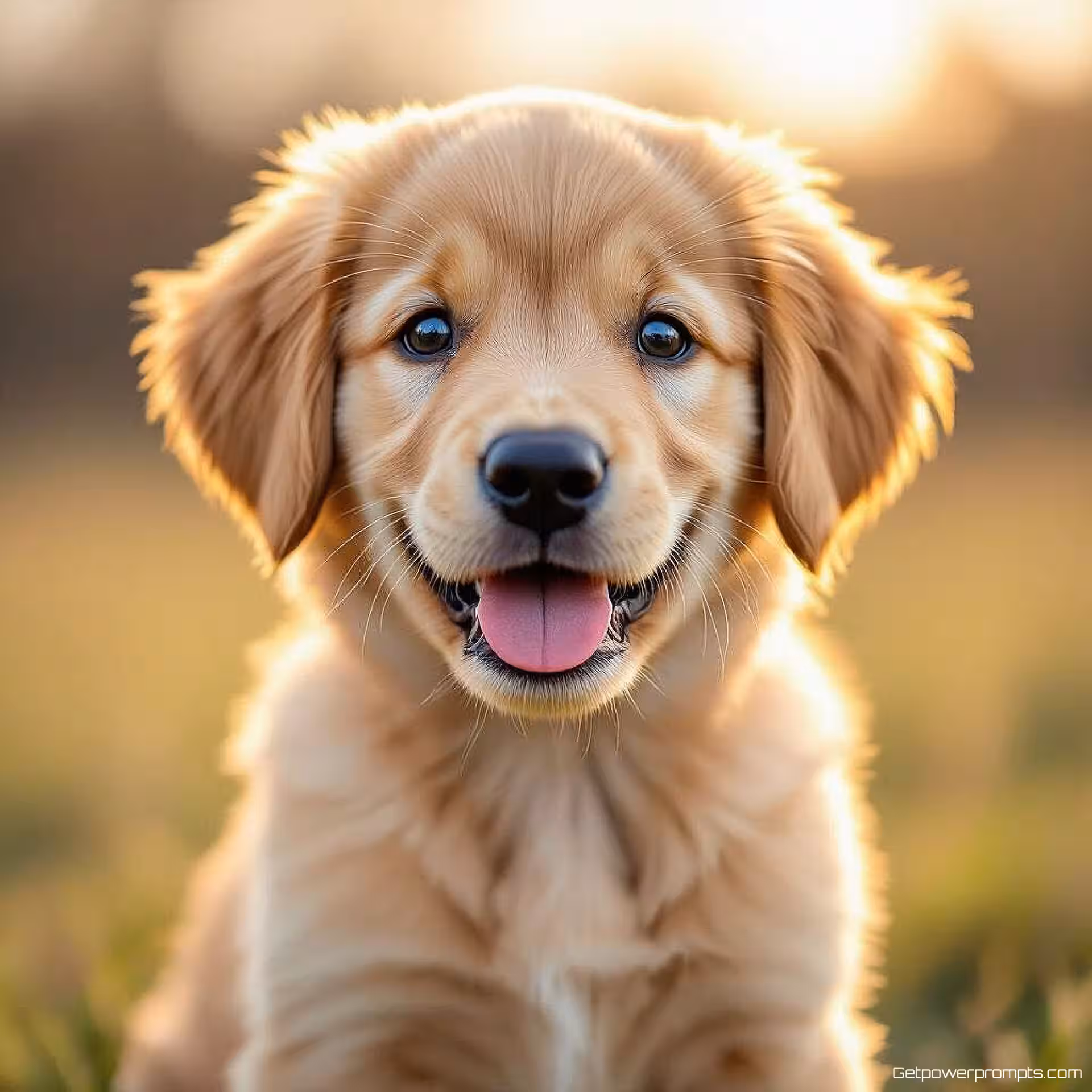 Golden retriever puppy, fotorealistisch, close-up perspectief, natuurlijke belichting belichting, effen kleur achtergrond, warme aardtinten, ondiepe scherptediepte, Instagram story-formaat, speelse huisdier esthetiek, zachte achtergrond focus, boeiende diereninhoud, sociale media huisdierfotografie, authentieke huisdierpersoonlijkheid, mobiel geoptimaliseerde lay-out