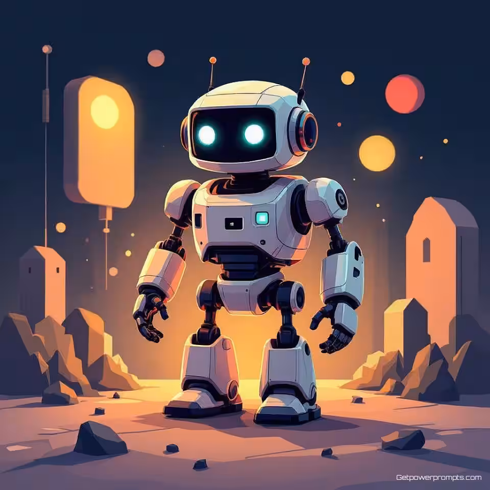 Verdwaalde robot, vector kunst, speels sfeer, gradiënt achtergrond, zacht licht verlichting, isometrisch perspectief, digitale illustratie, schone lijnen, geometrische compositie, moderne esthetiek, pastelkleuren, architectonische stijl, 3D-achtig uiterlijk, vlakke arcering, technische tekening