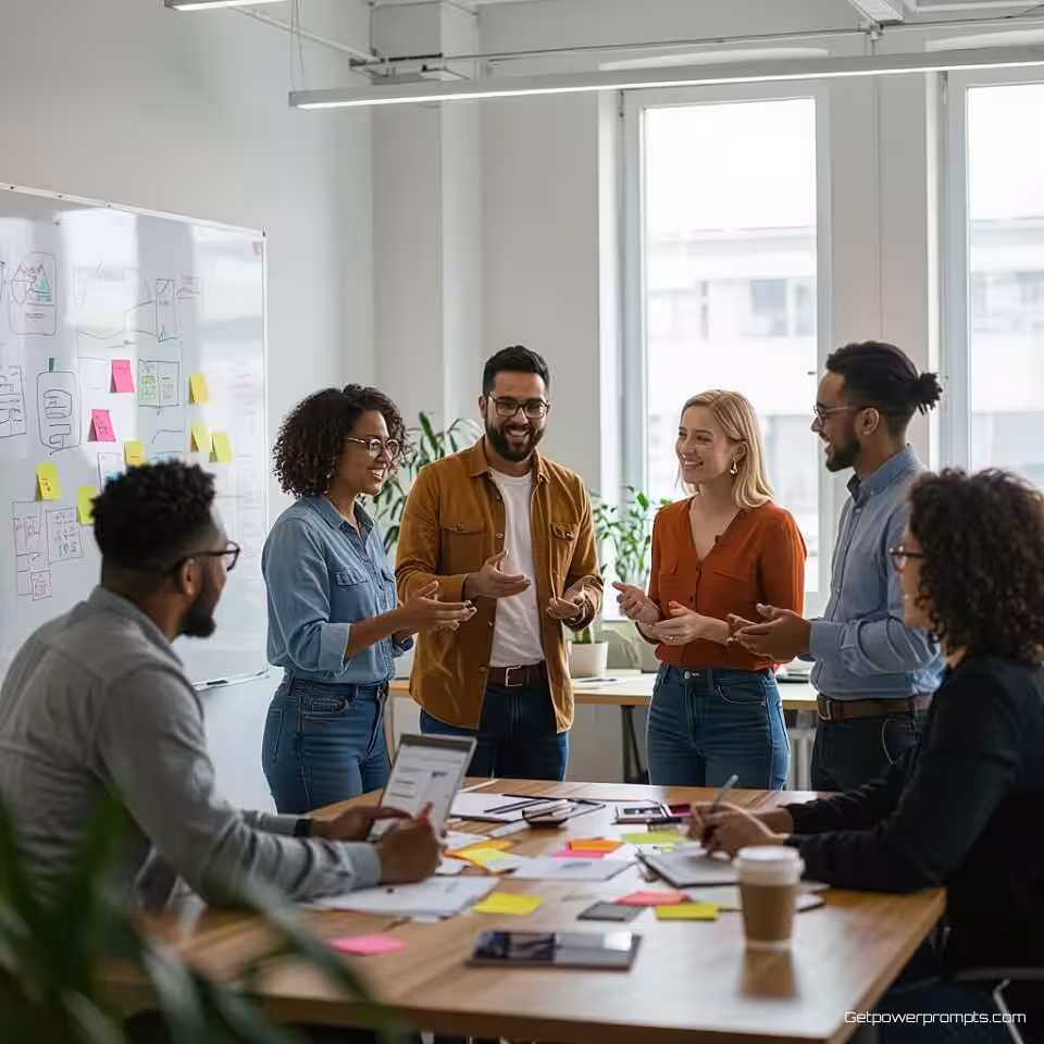 Creëer authentieke team brainstormvisuals die innovatiecultuur demonstreren, ideaal voor over-pagina's, teamcultuur showcases en innovatiegerichte content