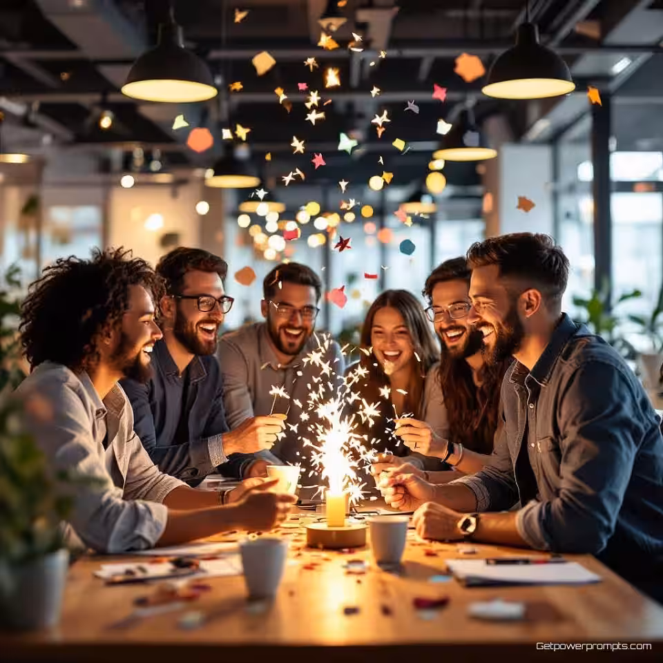 Genereer boeiende team prestatie beelden die authentieke emotionele momenten, professionele succes vieringen en mijlpaal erkenning tonen voor corporate communicatie en interne branding