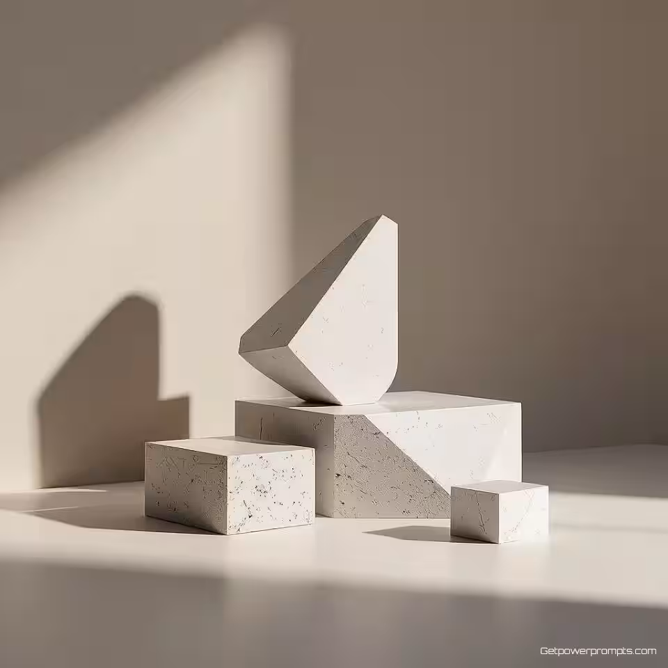 Abstracte geometrische vormen, fotorealistisch, serieus sfeer, gradiënt achtergrond, zacht diffuus licht belichting, minimalistische esthetiek, schone compositie, professionele landingspagina hero, scherpe focus, commerciële kwaliteit