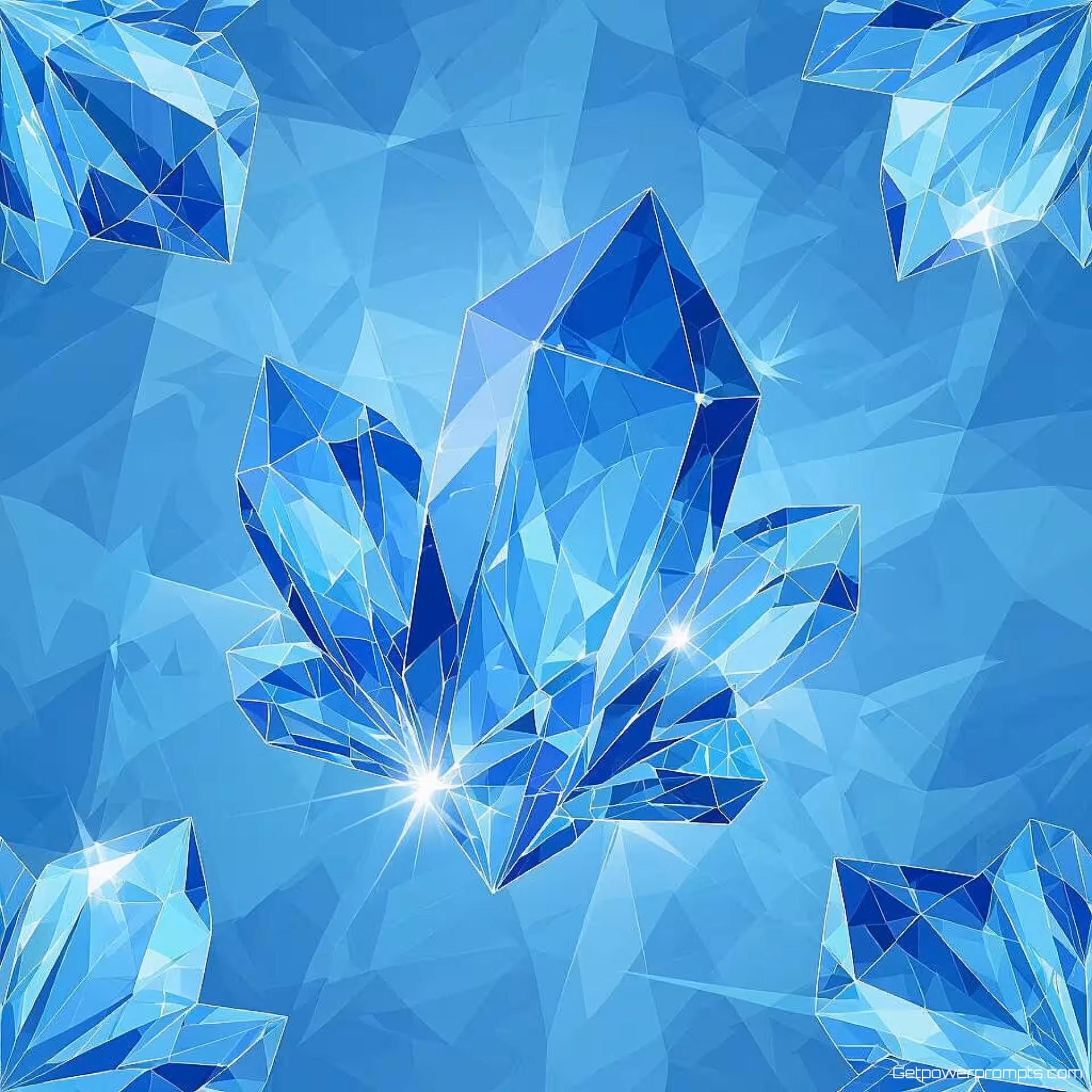 Gefacetteerd diamant kristalformaties, verloop achtergrond, koele blauwen kleurenpalet, geometrische mineraalpatronen, naadloos herhalend webachtergrond, moderne digitale kunst, doorschijnende kristaleffecten, omgevingsgloed belichting, professioneel ontwerp, subtiele brekingsdetails, abstracte edelsteentexturen