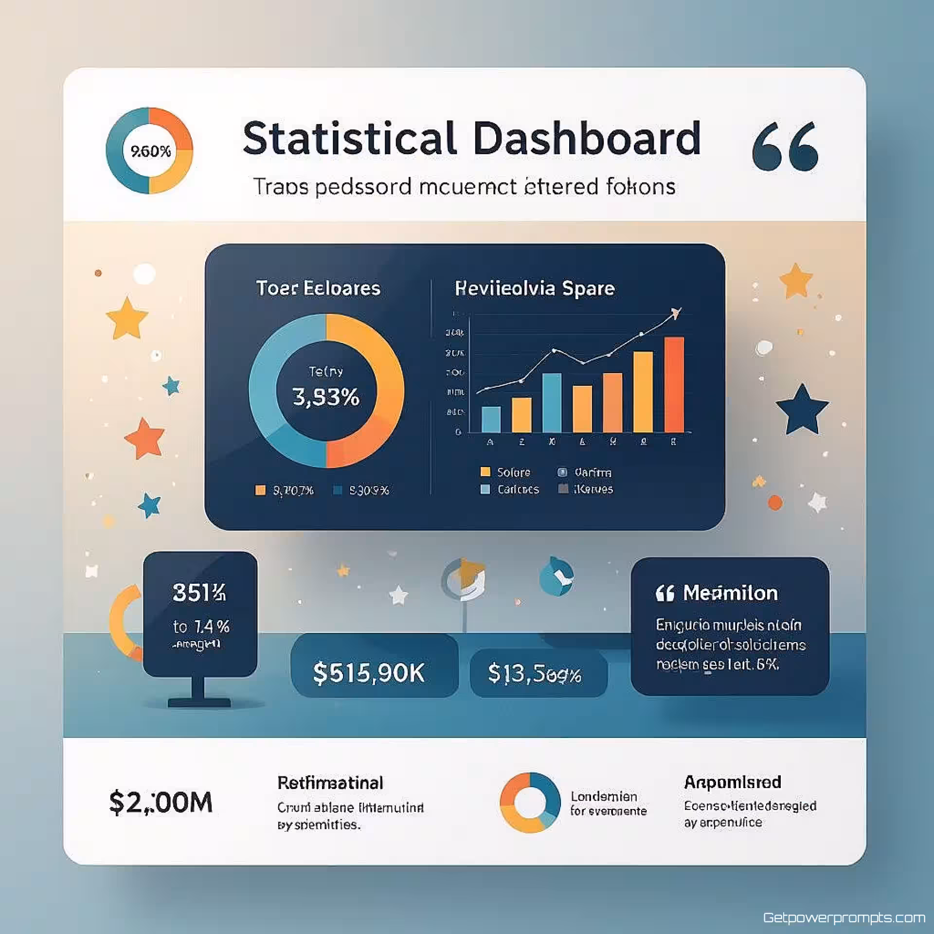 Statistisch dashboard lay-out, flat design, gradiënt achtergrond achtergrond, merk kleuren, zacht licht verlichting, getuigenis data visualisatie, professioneel infographic ontwerp, statistische elementen, quote integratie, merk kleuren, schone typografie, moderne lay-out, informatie hiërarchie, visueel verhaal, corporate presentatie kwaliteit